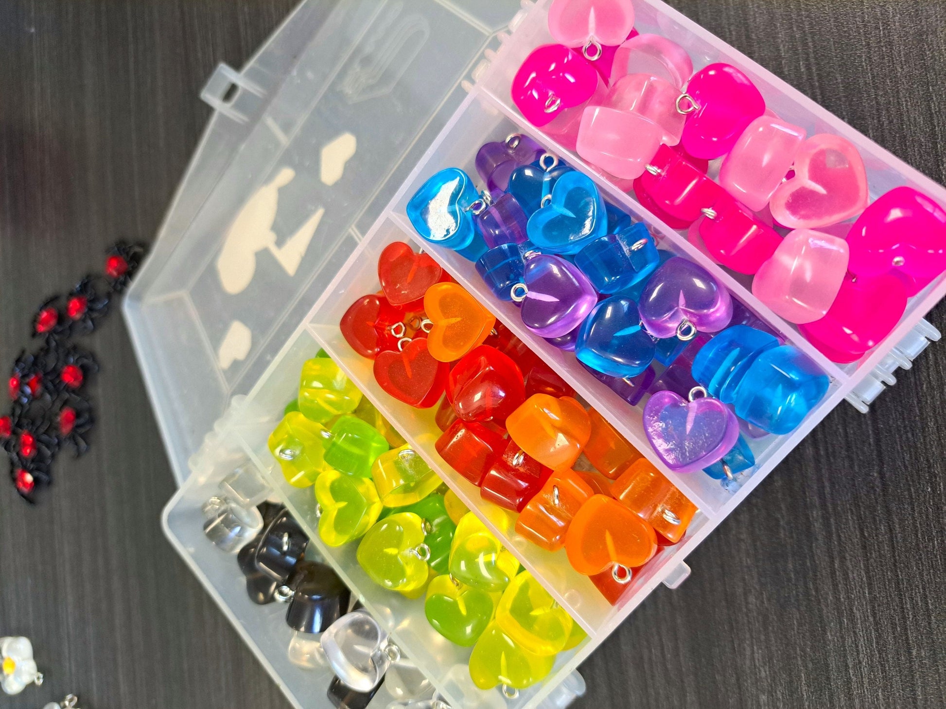This body chain is made with silver colored chains, acrylic charm hearts, and it closes with a lobster claw in the back. Real silver jump rings are used to attach all of the elements which adds extra durability. This item is size inclusive and you do not have to pay extra for larger sizes. Simply include your preferred size and heart colors in the "notes" section upon purchase.